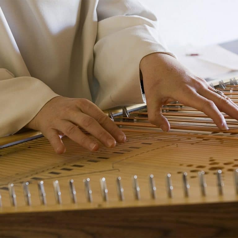 The courses, divided into several levels, include the technique of the instrument (posture, breathing, simple elements of anatomy), the guide to reading the different scores for zither, the study of repertoire pieces, the accompaniment of singing and psalmody, the guide to the use of zither in the liturgy, up to improvisation and the principles of harmony applied to zither live listening.